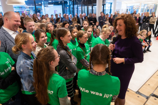 Vanmorgen hebben minister Van Engelshoven en minister Slob samen met leerlingen van Basisschool Benoordenhout uit Den Haag en het Driestar College uit Gouda het nieuwe interactieve programma van de tentoonstelling Wie ben ik, wie was jij? gevolgd. Tijdens de opening zong Yosina Rumajauw, winnaar van The Voice Kids 2018, het nummer Ken je mij van Trijntje Oosterhuis.