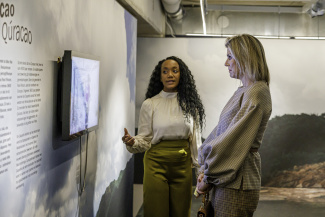 Koningin Máxima kreeg een rondleiding door gastconservator Dyonna Benett en Zion Pigott langs de thema’s Bestuur, Samenleving, Slavernij en Veerkracht. “Veerkracht’ van de Curaçaoënaars door de eeuwen” vormde de rode draad van de rondleiding.