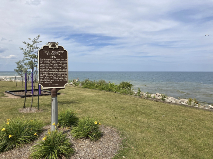 - The historical marker for the Phoenix disaster at North Point Park, Sheboygan. Photo Joske Meerdink, 31 July 2022.