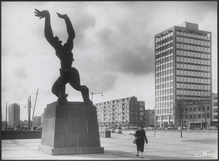 De Franse beeldhouwer Ossip Zadkine maakte het bronzen beeld “De verwoeste stad” naar aanleiding van het bombardement op Rotterdam. Het beeld stelt een menselijke figuur voor met een open borst. Het symboliseert hoe Rotterdam haar hart, de historische binnenstad, verloor door de enorme branden na het bombardement. Het beeld is een rijksmonument en staat op Plein 1940 in Rotterdam, uitkijkend over de Leuvehaven.