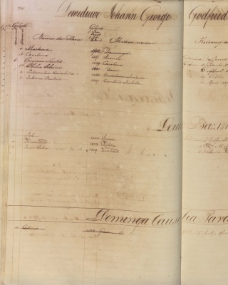 | Eigenaar | Dit is de naam van de (voormalige) eigenaar van de persoon. De namen zijn overgenomen zoals ze in de registers staan vermeld. Wel zijn afkortingen als ‘wed.’ en ‘bl.’ vervangen door ‘weduwe’ en ‘boedel’. Als de naam van een eigenaar is doorgehaald en vervangen door diens weduwe of een ander familielid zonder dat de mensen naar een nieuw folio overgeschreven zijn, dan zijn beide namen in de kolom Eigenaar vermeld. |